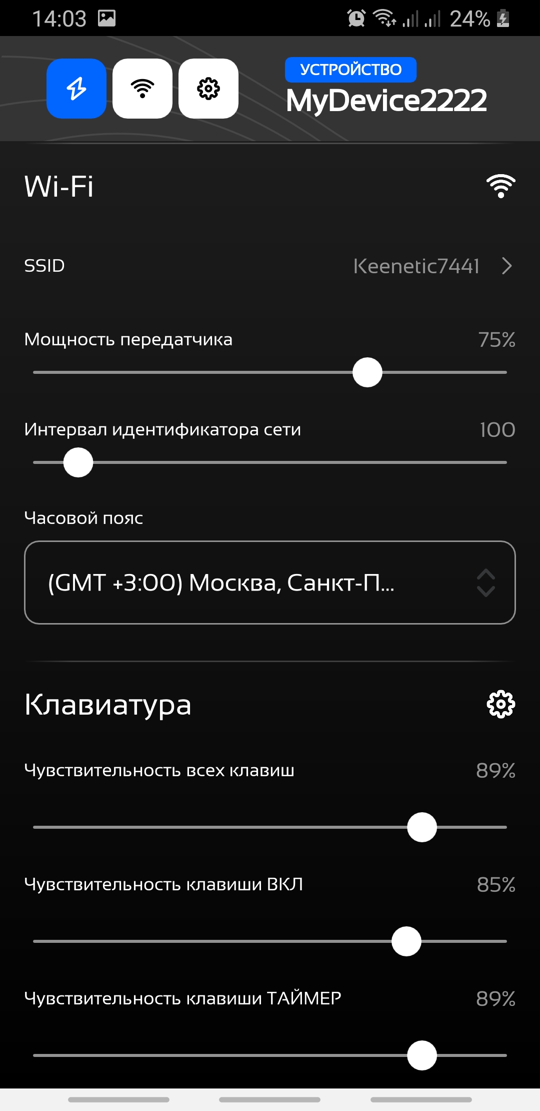 !!!Внимание!!! Необходимо помнить, что для получения полного списка свойств смартфон должен находится в той-же сети WiFi что и контроллер. Это связано с особенность протокола, используемого при передачи настроек в контроллер. В случае, если смартфон находится в другой сети и связь осуществляется через облачный сервис, часть настроек будет недоступна.